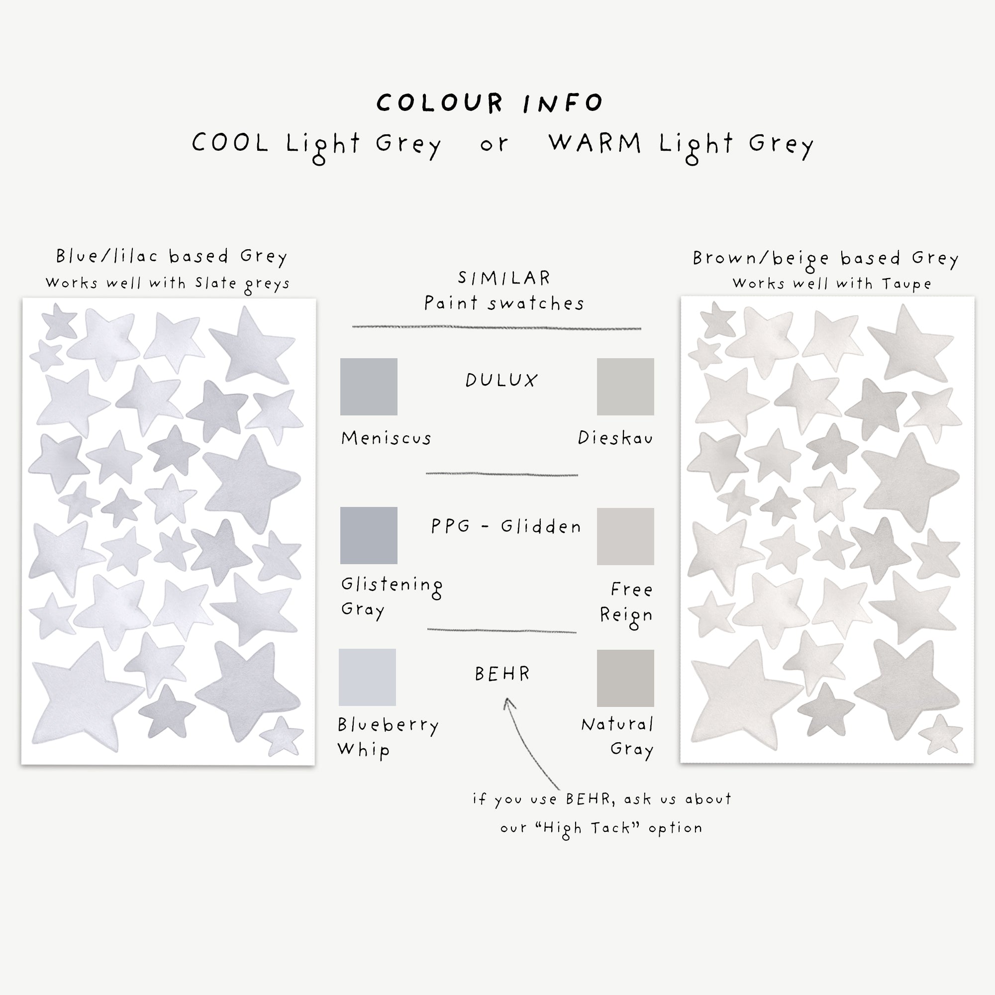 We do not believe that there is one strength of adhesive that can cater perfectly for everyone or every wall. Our standard decals are low tack and perfect for flat walls and standard paints. They are incredibly wall friendly and so easy to use. High tack is great for stain resistant paints, textured walls and public spaces