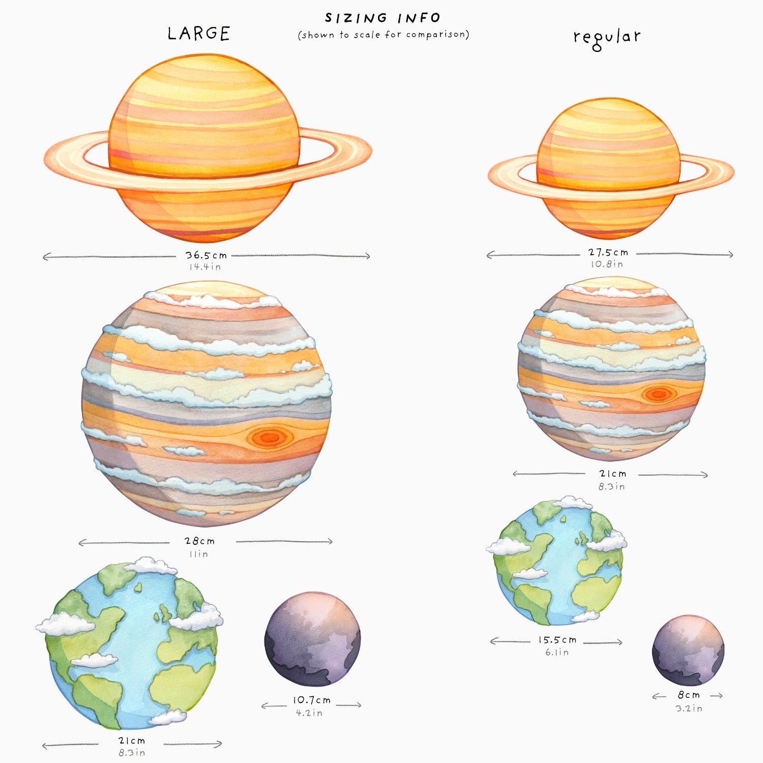 Our best selling Solar System set combined with a flaming hot sun for maximum impact. The sun is designed to be placed at the top/edge of your wall or against a door/window frame etc. The half sun is a fun way to emphasise the true, massive scale of the sun compared to the planets - it's so big we could only fit half on the wall at once!