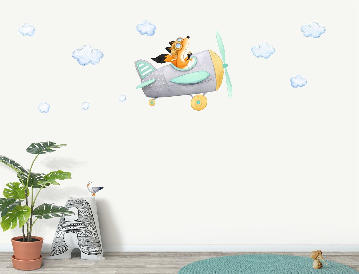 Fox Airplane Wall Decal - Softer Colours
