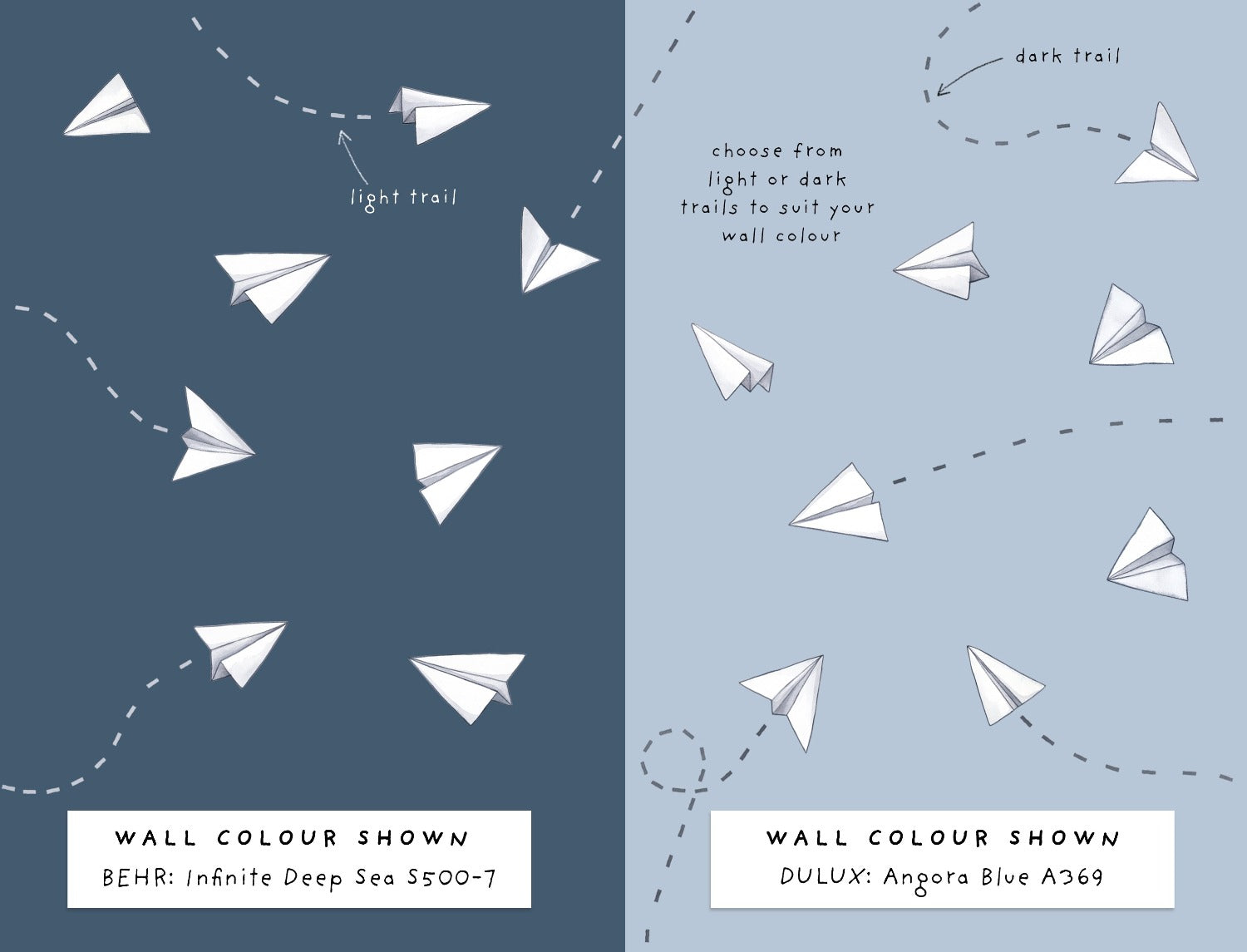 Available with a choice of either light or dark trails, these fab decals work well on any colour wall