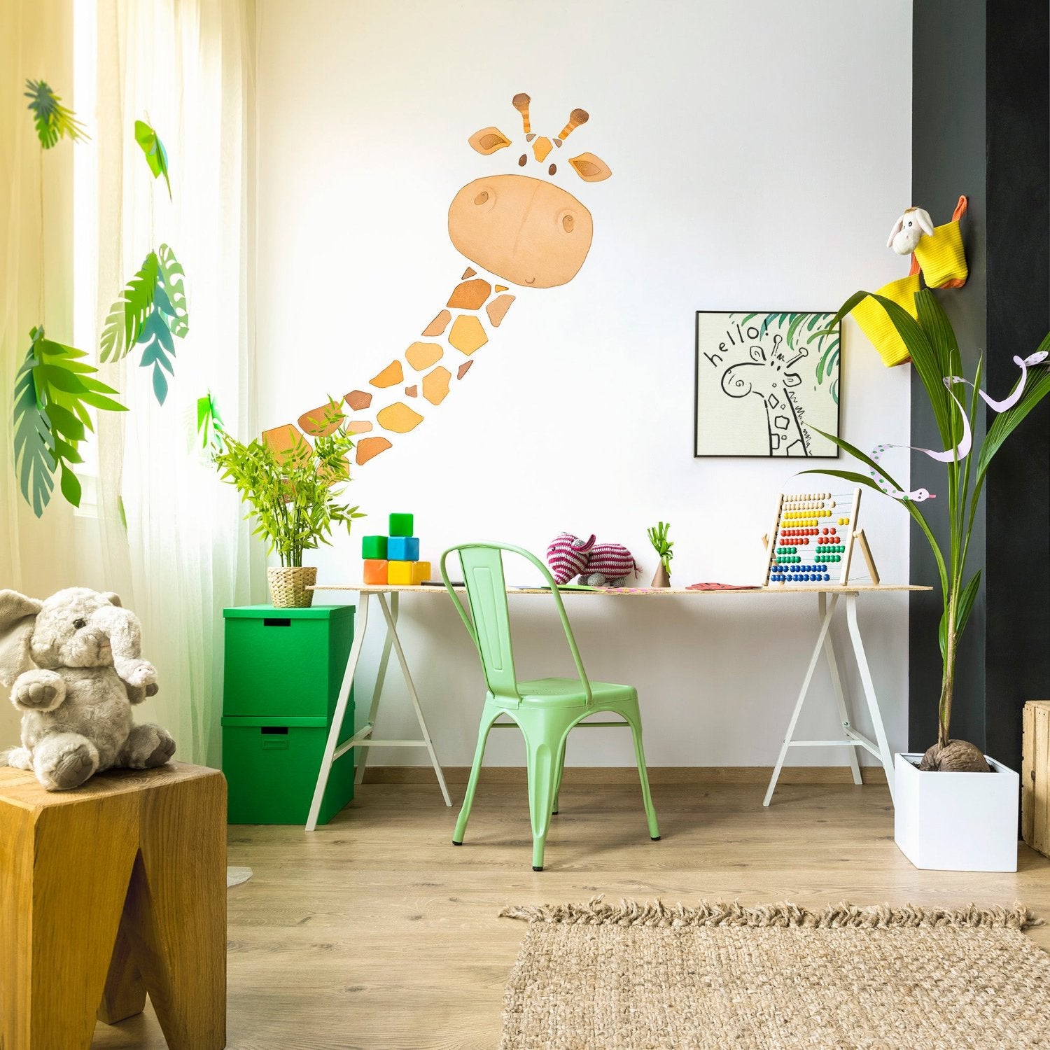 This fun giraffe decal makes you smile every time you walk into the room. It looks great when placed around the side of doors or furniture, or up from the floor