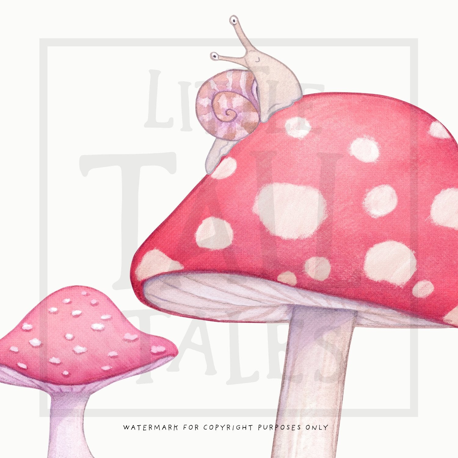 Various Toadstools and Mushrooms, a snail and a ladybird